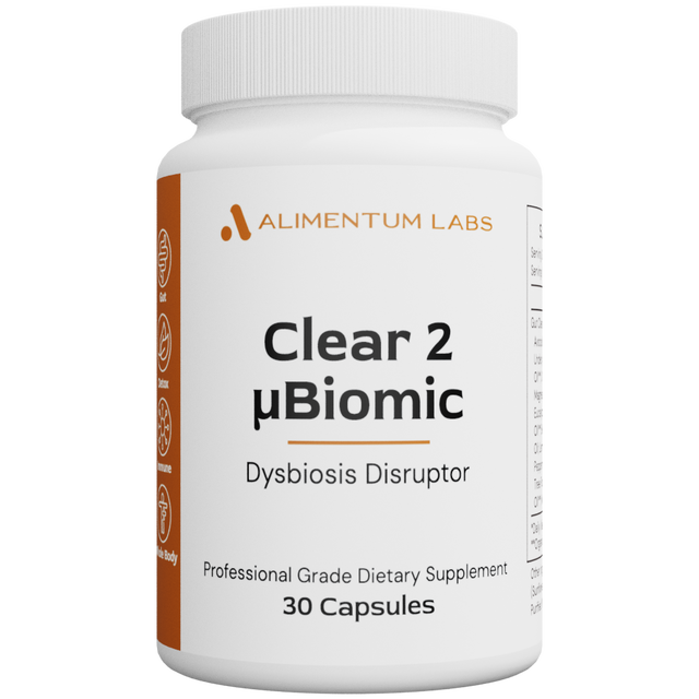 Clear 2 µBiomic by Alimentum Labs is a targeted respiratory and sinus health formula manufactured by Alimentum Labs in Ogden, UT. Designed to promote clear airways, balanced immune responses, and healthy microbial balance in the upper respiratory tract, it combines clinically studied probiotic strains with supportive nutrients and botanicals. This blend is especially beneficial during seasonal challenges, periods of environmental exposure, or when seeking to maintain optimal sinus comfort.
